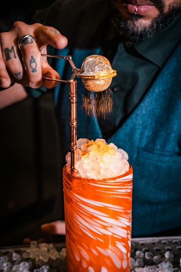 Almave Ambar, Tres Tribus 'Cuishe' Mezcal, Aperol, Fermented Coconut Milk, Passionfruit, Geranium, Tonic