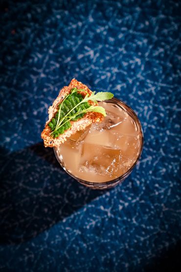 Bacardi Ocho Rum, Patron Reposado Tequila, Amaro Santorini, Kola Nut, Birch, Fermented Mint, CO2