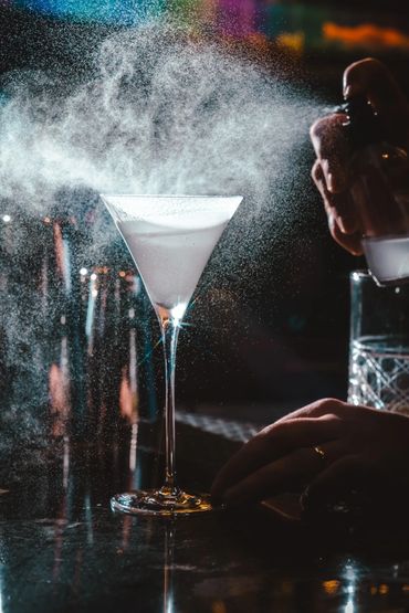 Bombay Sapphire Premier Cru Gin, Citrus Marigold, Lemon, Lime, Cream, Egg White Powder, Liquid Nitrogen
